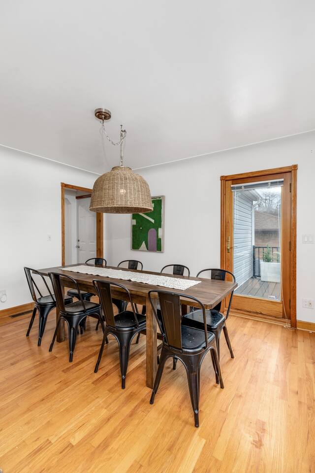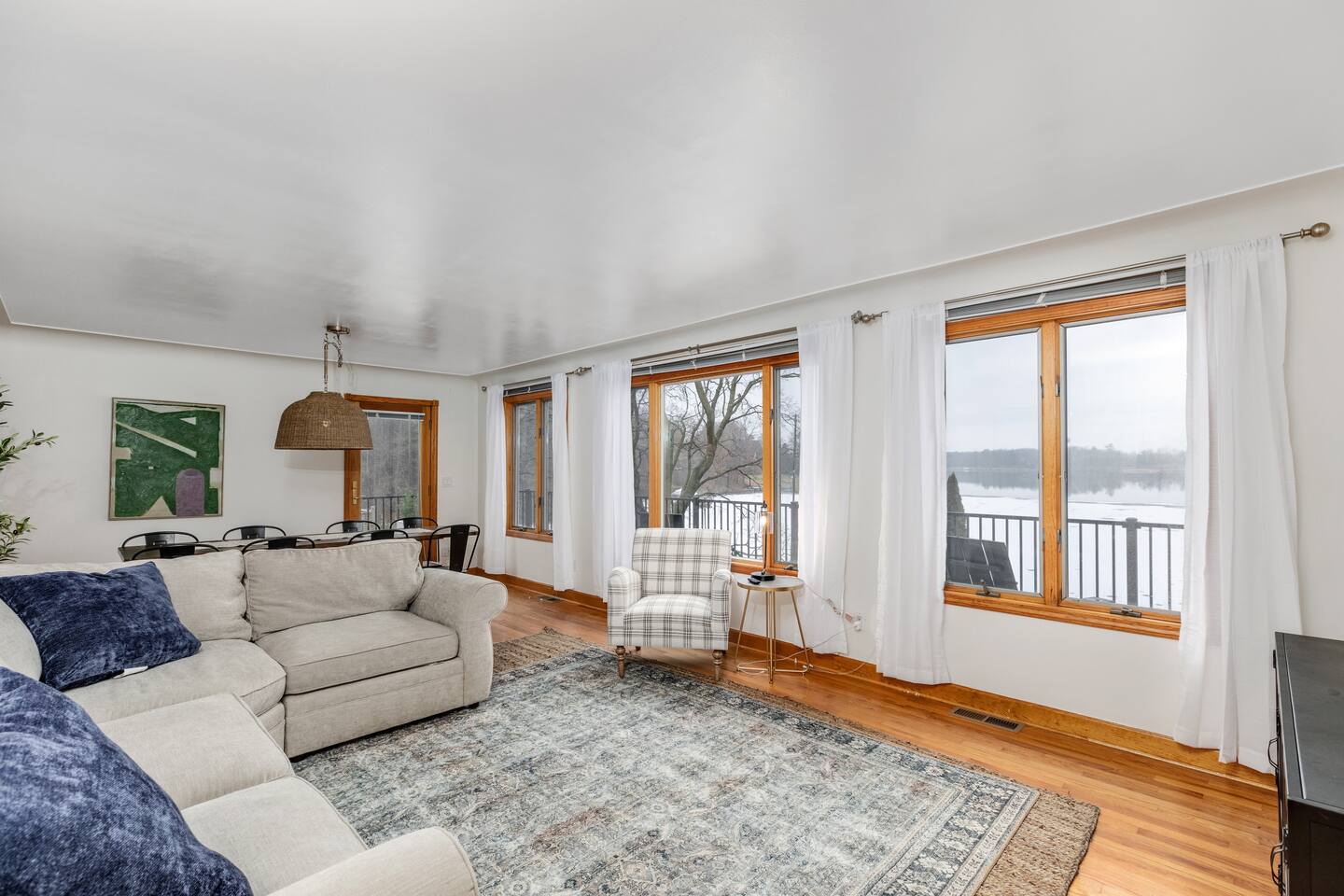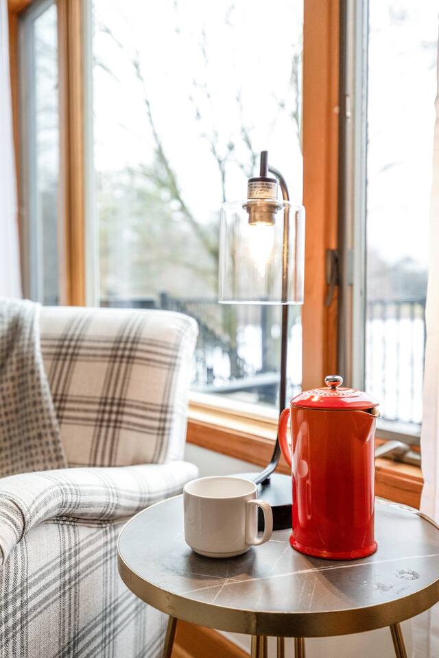 Enjoy an open and inviting living and dining area with a beautiful view of the lake. It’s the perfect spot to gather and share a meal. Kitchen & Dining: -Fully-equipped kitchen -Pots, pans, blender, and bakeware provided -Complimentary coffee, creamer and basic spices Bedrooms & Bathrooms: -Two spacious upstairs bedrooms, both with comfortable king-sized beds -Dedicated workspace -Pack-and-play available upon request -Two full bathrooms: one upstairs with a bathtub, and one on the lower level with a walk-in shower and a washer/dryer Outdoor Living: -Private hot tub overlooking the water -Lakeside fire pit for evening gatherings -Large deck with a barbecue grill -Direct lake access with a paddle boat and kayaks for your use Please note: The house is on a main road that does sometimes get busy.