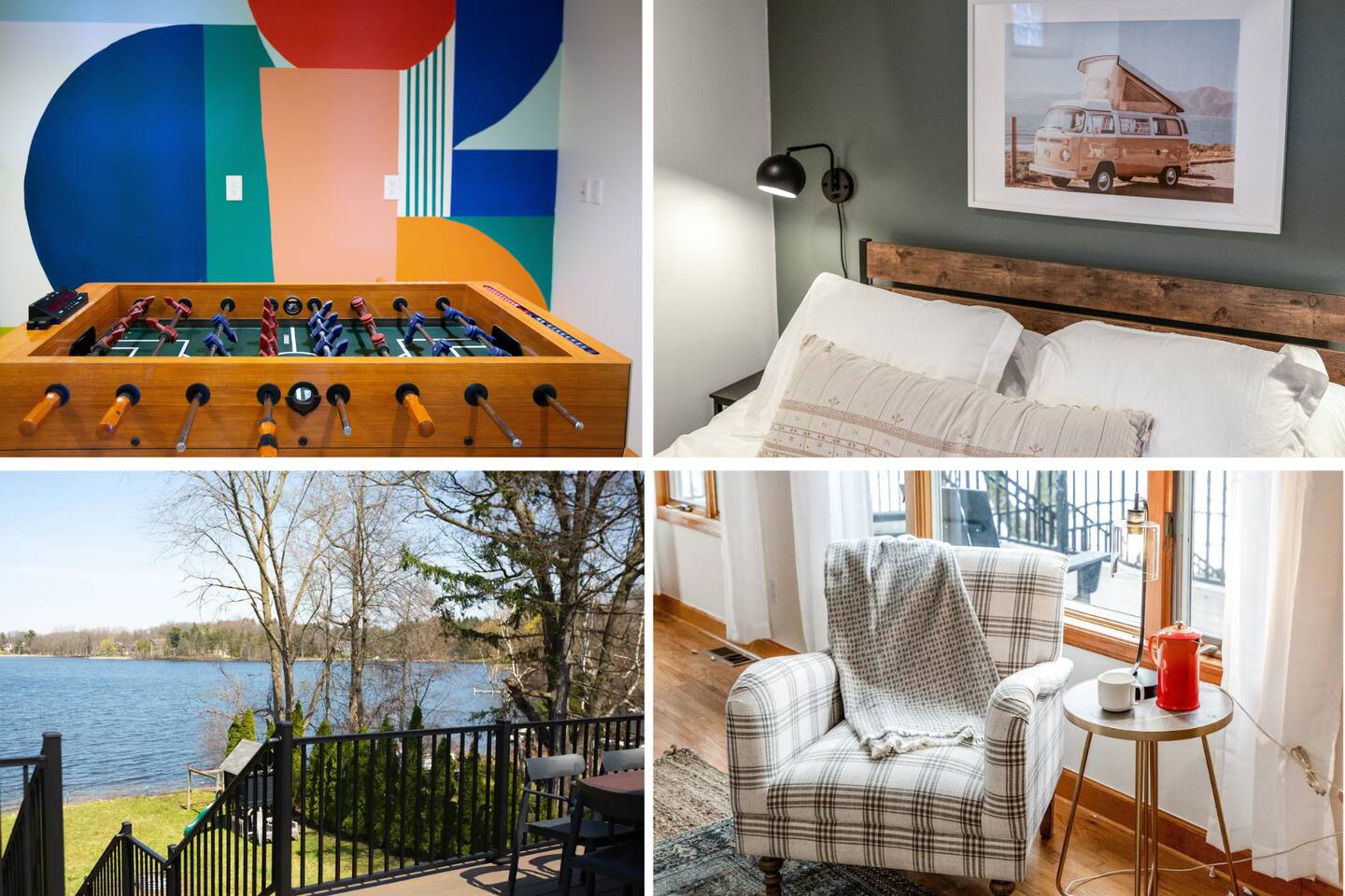 Escape to this private waterfront retreat near Lake Orion & Oxford. Perfect for families, this 4-bedroom home features a year-round hot tub with stunning lake views and a fire pit. Launch a kayak from the backyard or relax on the deck. Comfortably accommodates groups up to 8 for a memorable getaway.